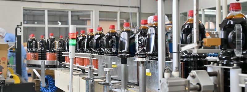 製造部では生産計画に基づき、お客さまにお届けする大切な商品の製造(火入れ)や、できあがった製品の各種容器への充填・梱包などを行っています。