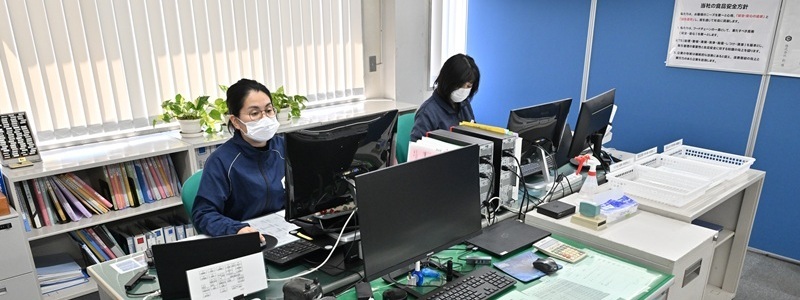品質保証課では製品の理化学検査や細菌検査、製造方法や原材料の選定、人員や設備、生産手順の指定などを行っています。また、各種資料の作成や役職員への衛生指導、各種勉強会なども実施します。