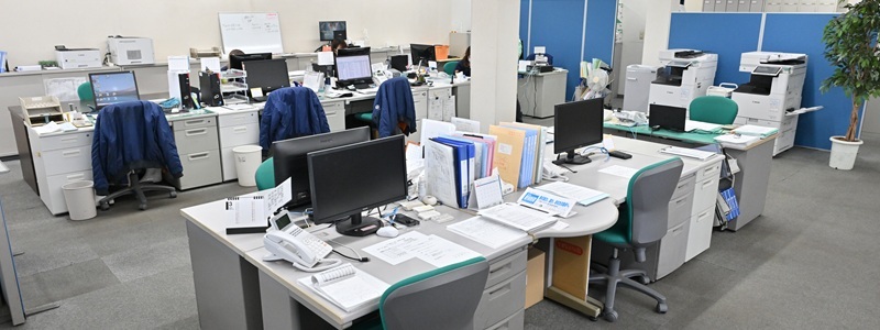 総務課では、経理事務と人事・労務管理業務を中心に、採用、広報、法務を含む各種事務・企画、管財どを行っています。